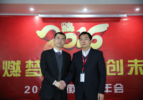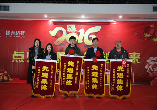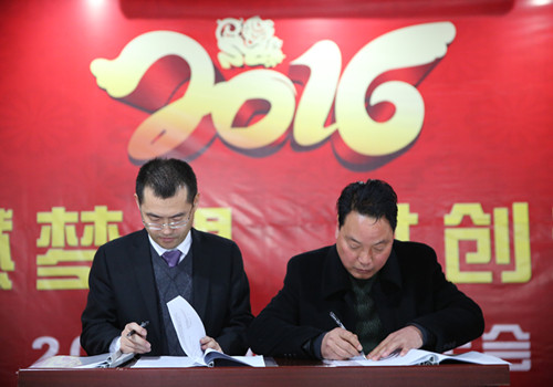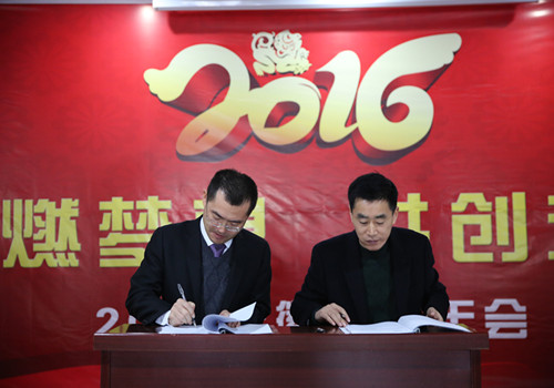 9時(shí)整,會(huì)議在莊嚴(yán)的國(guó)歌聲中正式召開。安徽瑞泰總經(jīng)理劉錫俊在會(huì)上作了2015年度公司工作總結(jié)報(bào)告,表彰了2015年度優(yōu)秀員工和先進(jìn)集體,五大運(yùn)營(yíng)中心負(fù)責(zé)人代表部門鄭重簽訂了2016年度經(jīng)營(yíng)目標(biāo)責(zé)任狀和安全責(zé)任書。最后張董做了熱情洋溢的講話,他勉勵(lì)大家胸懷夢(mèng)想,再接再厲,安徽瑞泰一定會(huì)再創(chuàng)輝煌。