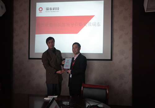 3月3日上午10點,宣城市委組織部、寧國市委組織部相關(guān)負(fù)責(zé)人 ,專程來到安徽瑞泰,為安徽瑞泰總工汪雷榮獲2014年安徽省“創(chuàng)新創(chuàng)業(yè)領(lǐng)軍人才特殊支持計劃”創(chuàng)新領(lǐng)軍人物授牌。