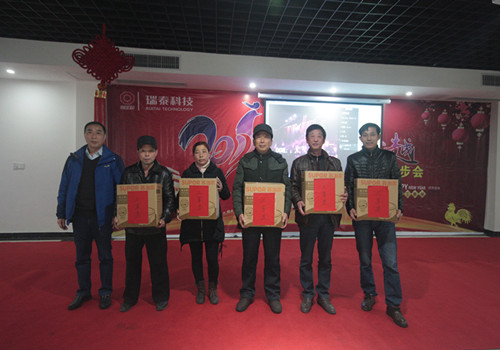 張金龍董事長做了熱情洋溢的講話,首先張董充分肯定了安徽瑞泰的經(jīng)營班子在2016年,帶領(lǐng)大家做出了艱辛的努力。深度分析了公司發(fā)展中存在的不足,展望了2017年行業(yè)形勢和公司新的亮點和機(jī)遇,要求新的一年,安徽瑞泰要從技術(shù)創(chuàng)新、管理創(chuàng)新、營銷模式創(chuàng)新三個方面增強(qiáng)企業(yè)競爭力;強(qiáng)調(diào)要重點圍繞提質(zhì)提效,調(diào)結(jié)構(gòu),促轉(zhuǎn)型,穩(wěn)中求進(jìn),確保2017年的各項目標(biāo)圓滿實現(xiàn)。