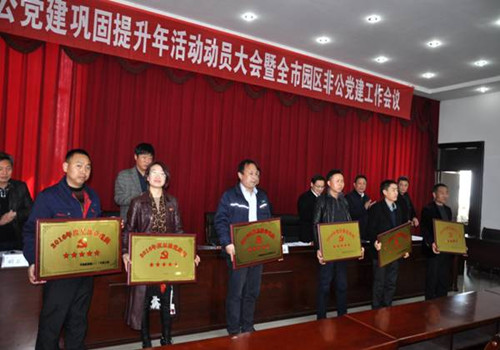 會(huì)議由張永強(qiáng)主持。會(huì)上,宣讀了開發(fā)區(qū)非公黨建鞏固提升年活動(dòng)方案;開發(fā)區(qū)黨工委副書記梅駿國作動(dòng)員報(bào)告;對開發(fā)區(qū)2016年度星級黨支部、優(yōu)秀支部書記、優(yōu)秀黨務(wù)工作者和優(yōu)秀黨員進(jìn)行了表彰。 安徽瑞泰黨支部榮獲2016年開發(fā)區(qū)五星支部榮譽(yù)稱號。各黨支部代表與開發(fā)區(qū)黨工委簽訂了黨建工作目標(biāo)責(zé)任書;先進(jìn)黨組織、創(chuàng)建單位及優(yōu)秀黨員代表作了交流表態(tài)發(fā)言;梅長春作重要講話。